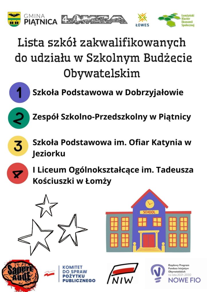 Gratulujemy wszystkim szkołom i trzymamy kciuki za kreatywne pomysły uczniów w ramach Szkolnego Budżetu Obywatelskiego!